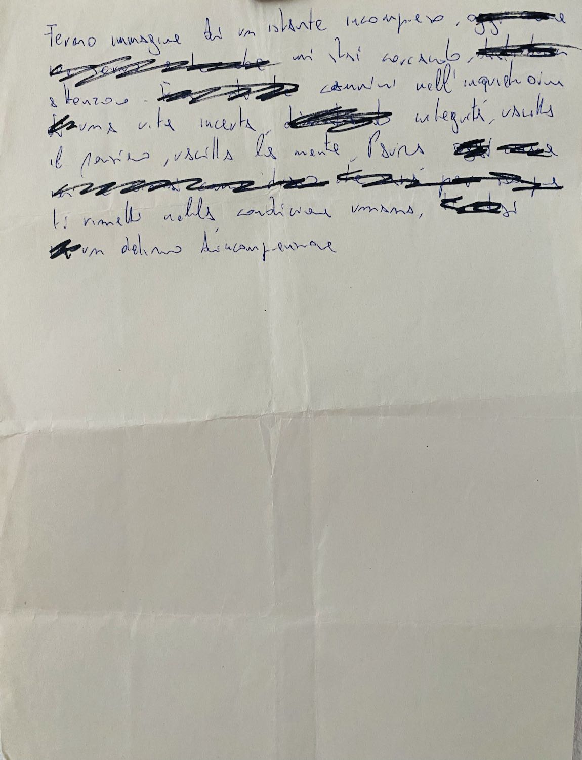 Da qui, nel profondo, penso a tutte le mie ambizioni, che ripetutamente sono cadute allo stesso modo di quei soldatini che mettevo sul pavimento, uno affianco all’altro, e che, con una piccola pallina di carta, dovevo far cadere. Ci giocavo con mio zio e mi arrabbiavo quando perdevo: desideravo vincere. Ero un bambino, ed era giusto che vincessi, pensavo.